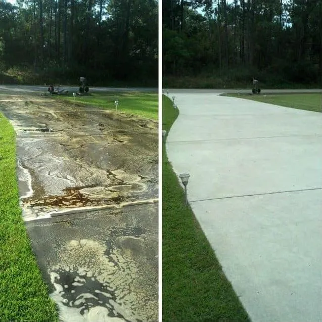 We use the right method for every surface — soft washing for siding and roofs, high pressure for concrete.